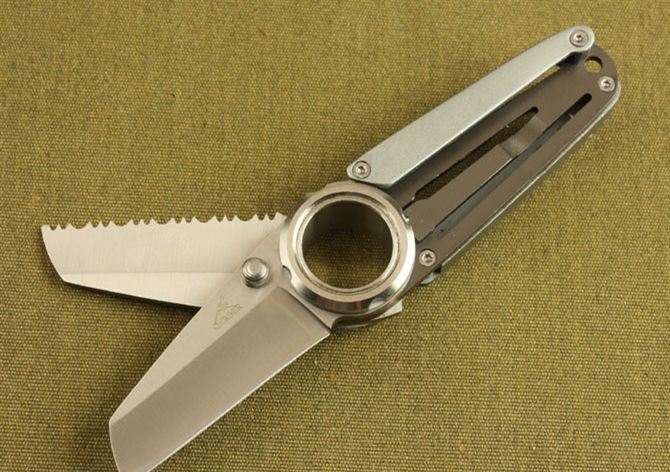 戈博—双面战士折刀 刃材:3Cr13 硬度: 53HRC 全长:14CM 刃长:5CM 刃厚: 0.38CM 刃宽:3CM (最宽处) 柄长: 13.5CM 涂层:渡钛 柄材: 铝 重量:100克 锁定: 轴锁