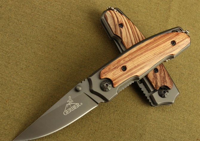 戈博-X18折刀 刃材:3Cr13 硬度: 55HRC 全长:15CM 刃长:6.5CM 刃厚: 0.27CM 刃宽:2.1CM (最宽处) 柄长: 9CM 涂层:钛版 柄材: 木片 重量:100克 锁定: 边锁