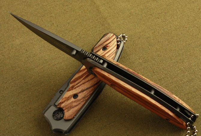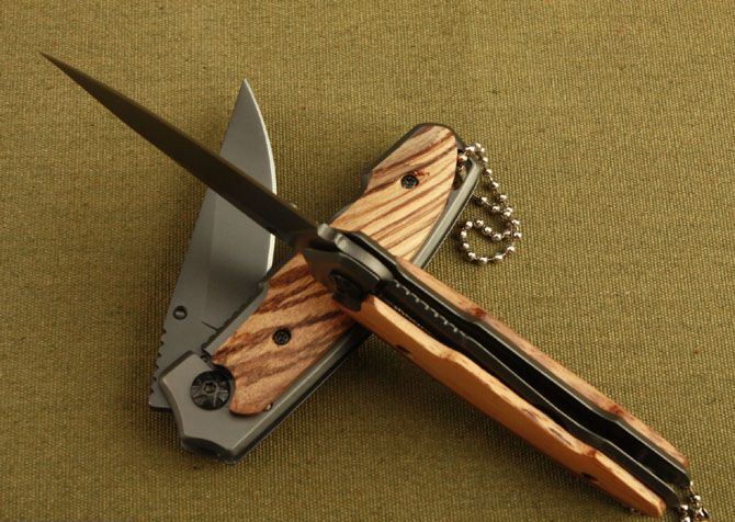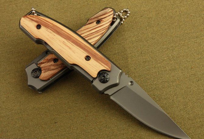 刃材:3Cr13 硬度: 55HRC 全长:15CM 刃长:6.5CM 刃厚: 0.27CM 刃宽:2.1CM (最宽处) 柄长: 9CM 涂层:钛版 柄材: 木片 重量:100克 锁定: 边锁