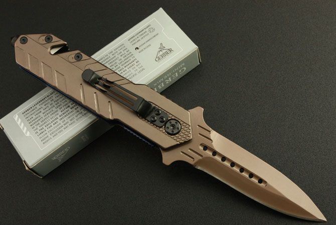 全 长:22.5cm 刃 长:9cm 柄 长:13cm 刃 宽:2.5cm(最宽处) 刃 厚:3.8mm 刃 材:3Cr13 硬 度:55HRC 刀 柄:钢 表 面:镀钛 重 量:240克 锁定方式:快开
