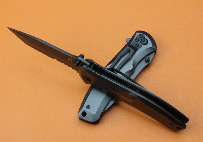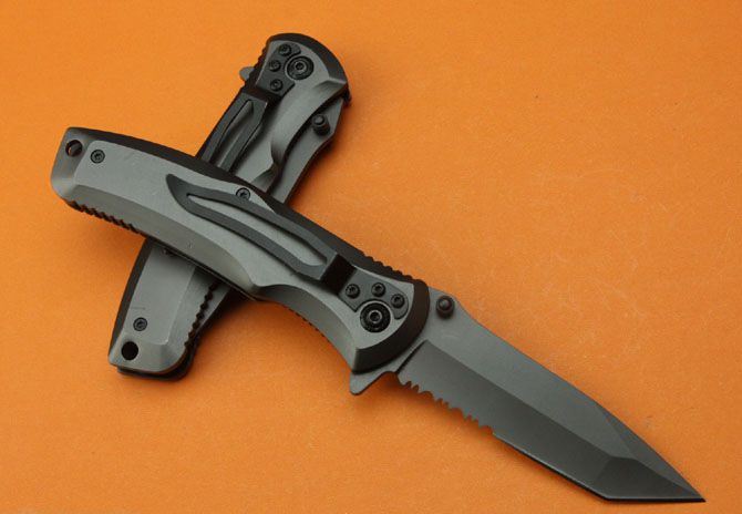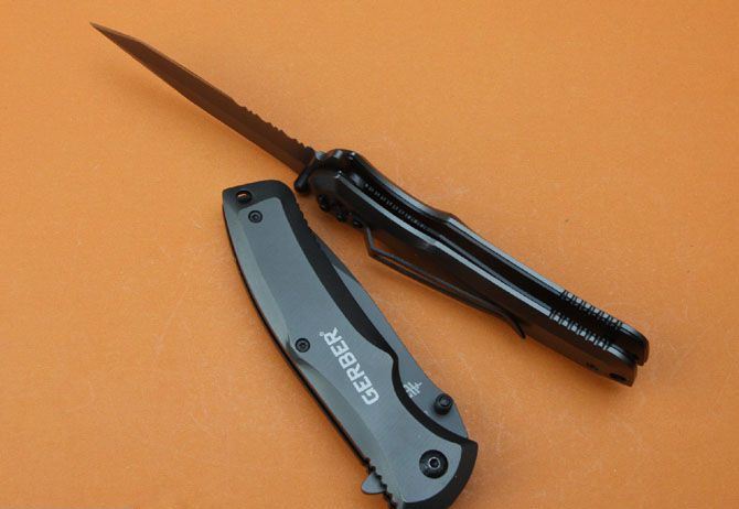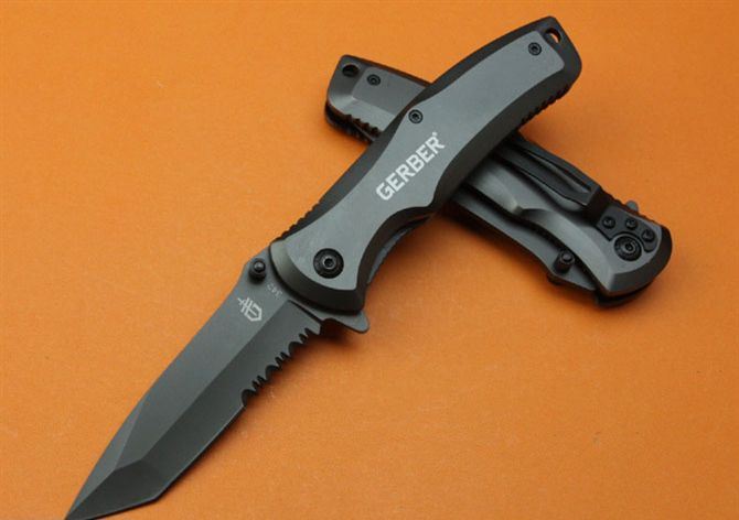 戈博—342折刀(平头) 全长:20cm 刃长:8.5cm 柄长:11.5cm 刃厚:2.6mm 刃材: 3Cr13 柄材: 全钢 硬度: 56HRC 重量:200克 表面处理:灰钛 锁型:平头侧锁,尖头快开