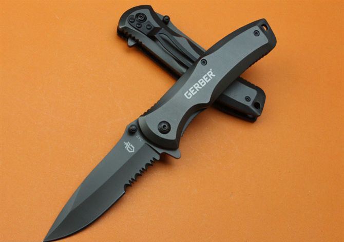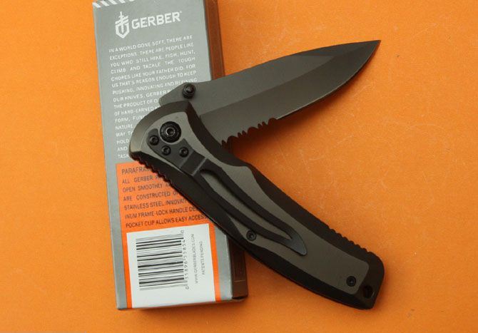 戈博—342折刀(尖头) 全长:20cm 刃长:8.5cm 柄长:11.5cm 刃厚:2.6mm 刃材: 3Cr13 柄材: 全钢 硬度: 56HRC 重量:200克 表面处理:灰钛 锁型:平头侧锁,尖头快开
