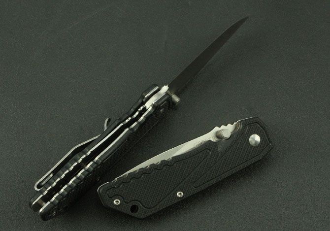 戈博GERBER小折 全 长:165mm 刃 长:70mm 柄 长:95mm 刃 宽:20mm 刃 厚:2.9mm 刃 材:8Cr13 重 量:70g 硬 度:57HRC 表 面:砂光 柄 材:黑G10柄 锁 型:侧锁