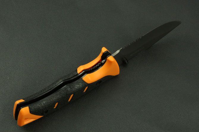 戈博-007C折刀 全 长:220mm 刃 长:90mm 柄 长:125mm 刃 宽:40mm 刃 厚:2.8mm 刃 材:5Cr13Mov 重 量:200g(含包装) 硬 度:57HRC 表 面:灰钛 柄 材:二次注塑 锁 型:线锁 其 他:配尼龙套和纸盒