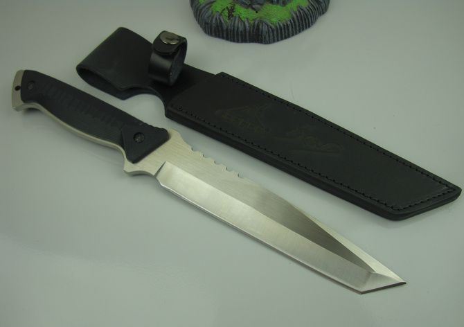 全 长:336mm 刃 长:185mm 刃 宽:36mm 刃 厚:6mm 刃 材:5Cr13 硬 度:56HRC{真空热处理) 刀 总;460g 总 量:630g(含包装) 表 面: 丝光 柄 材:G10柄 配彩盒和说明书
