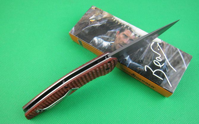 戈博F65快开折刀 全长:22.2cm 刃长:10cm 柄长:13cm 刃厚:0.33cm 刃宽: 2.8cm 刃材: 5Cr13 柄材: 全钢伴酸枝木 硬度: 57HRC 净重;170克 锁定;线锁 表面处:镀钛 其他:原厂彩合.外贸品质.