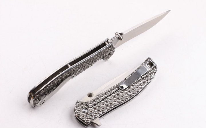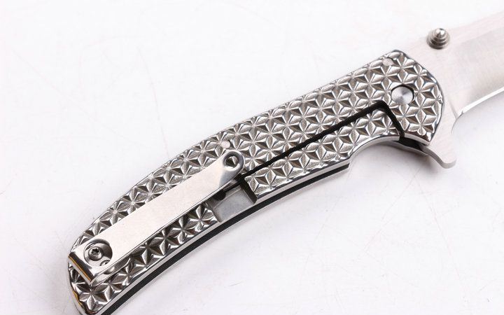 ZT-0600零公差高品质折刀 全 长:203mm 刃 长:88mm 柄 长:115mm 刃 宽:25mm 刃 厚:3mm 刃 材:7Cr13Mov 表 面:拉丝 柄 材:钢柄 零公差(Zero tolerance)折刀,刀刃,弹片等主要部件采用精冲模具开料,周边无需打磨,尺寸一致,主轴等配件采用数控车精密加工,手柄采用精钢,高强度,轻便,表面凹凸立体成型,手感舒适!整把刀结构配合精密,质量上乘,价格实惠,是一款实用EDC精品折刀