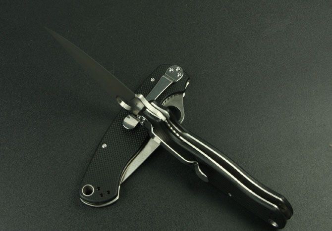 蜘蛛—美军伞兵刀 全 长: 211 mm 刀 长: 89mm 闭合长度: 122 mm 刃 材: VG-10 硬 度: 60-62HRC(真空热处理) 表 面: 缎面处理 刃 厚: 3.5mm 柄 材: 黑色G10(玻璃纤维) 锁 型: 线锁 重 量: 145g 原产地: 美国 (中国大陆代工)