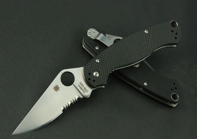 蜘蛛—第二代美军伞兵刀(半齿) 全 长:210mm 刃 长:78mm 柄 长:120mm 刃 宽:32mm 刃 厚:2.8mm 刃 材:8Cr13Mov 重 量:120g(含包装) 硬 度:58HRC 表 面:砂光 柄 材:G10 锁 型:线锁 其 他:白纸盒