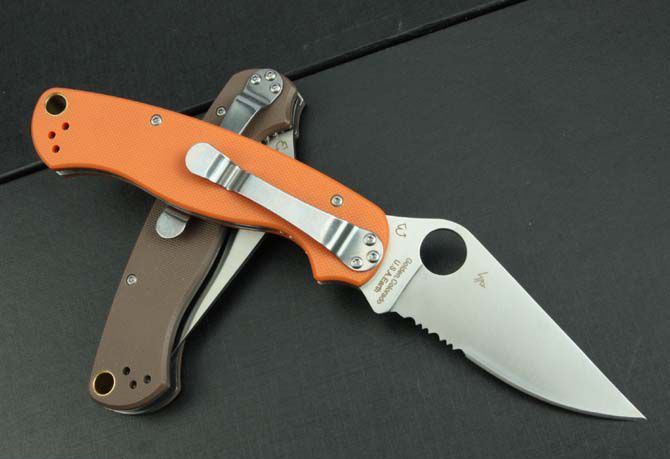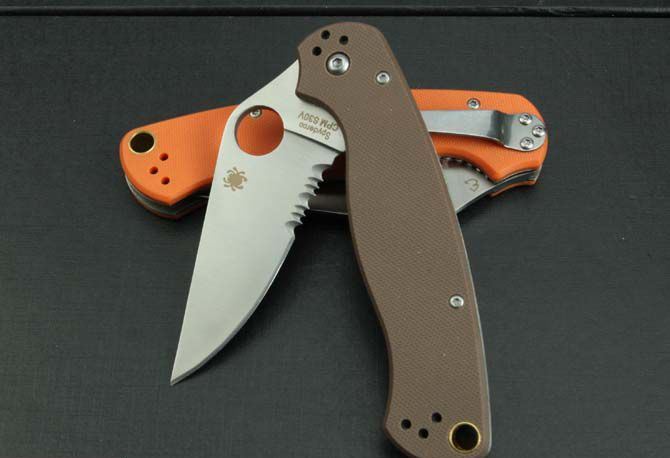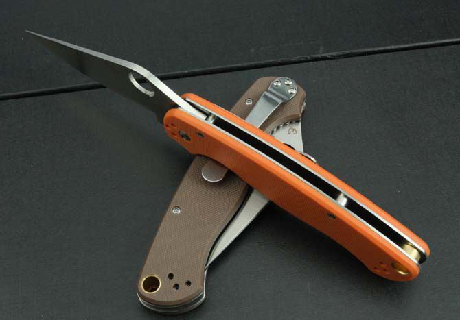 蜘蛛—C81线锁G10柄折刀(褐色全刃和橙色半齿)