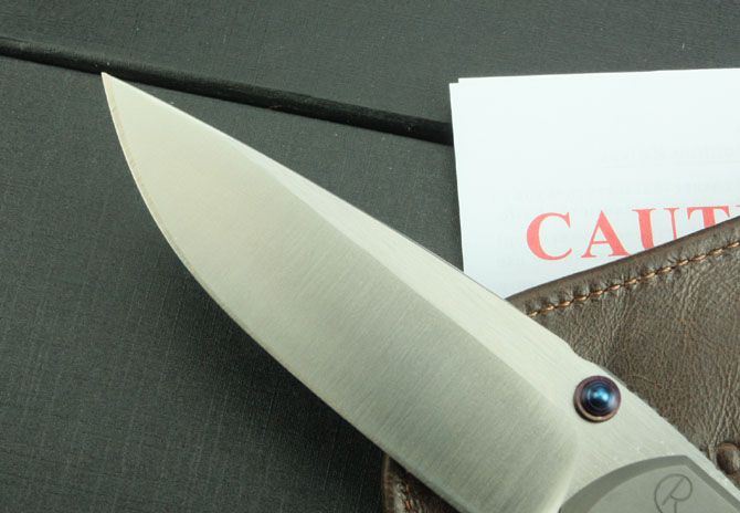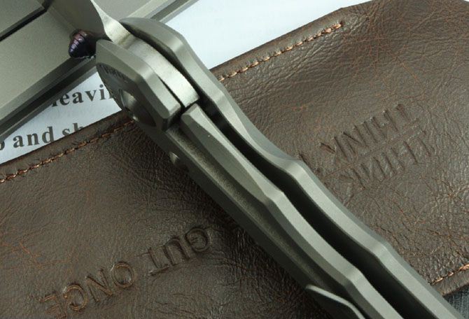 全 长:210mm 刃 长:90mm 柄 长:120mm 刃 宽:30mm 刃 厚:3.4mm 刃 材:9Cr13Mov 重 量:190g(含包装) 硬 度:59HRC 表 面:手工砂光 柄 材:钛柄 锁 型:线锁 其 他:配牛皮刀套和彩盒