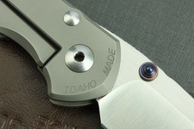 克里斯夫—25周年纪念版折刀 全 长:210mm 刃 长:90mm 柄 长:120mm 刃 宽:30mm 刃 厚:3.4mm 刃 材:9Cr13Mov 重 量:190g(含包装) 硬 度:59HRC 表 面:手工砂光 柄 材:钛柄 锁 型:线锁 其 他:配牛皮刀套和彩盒