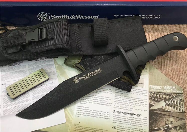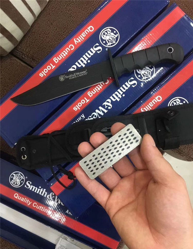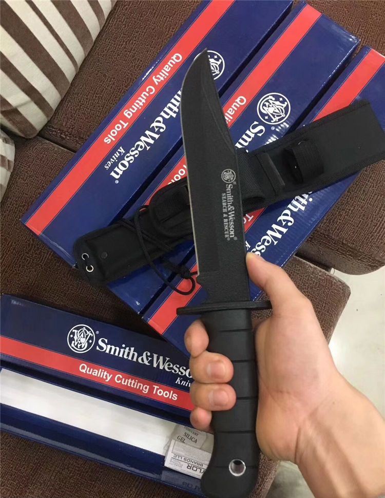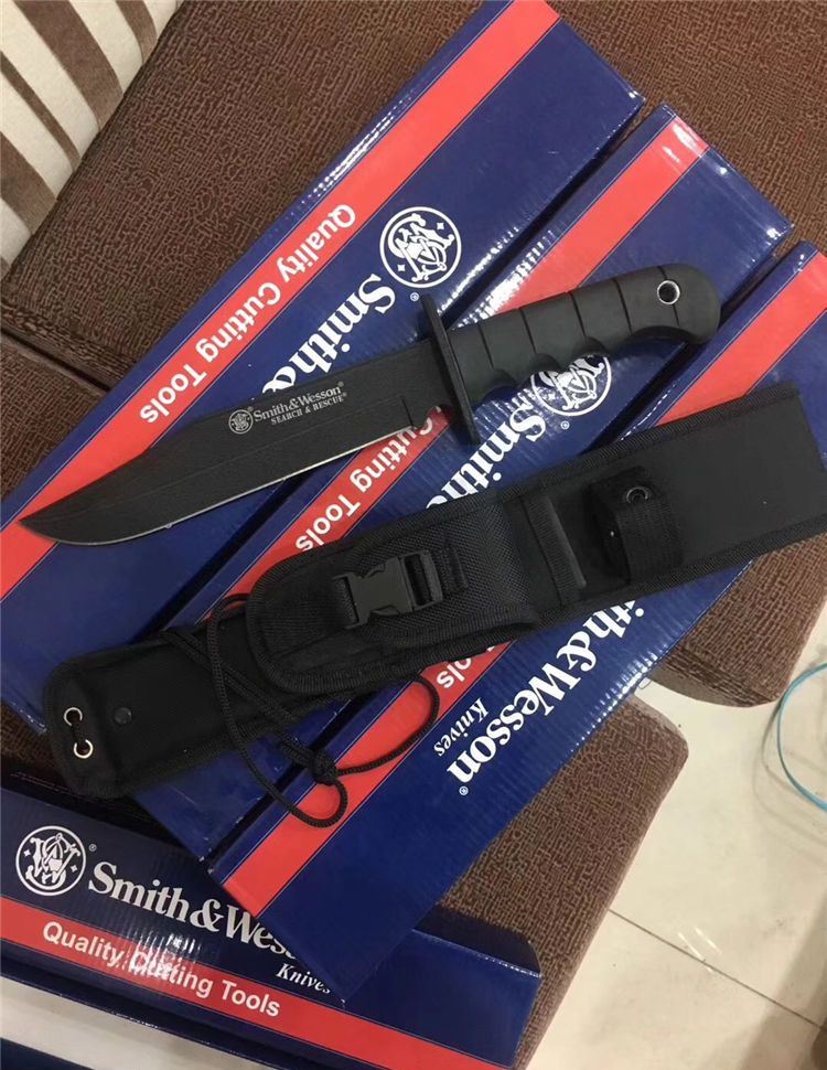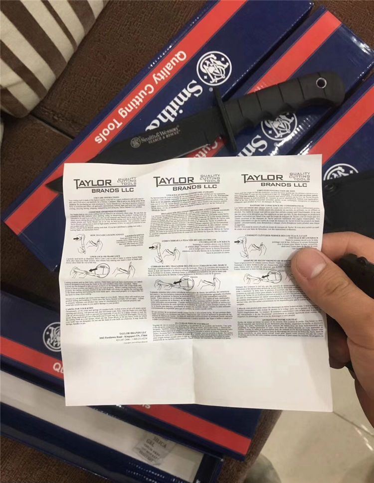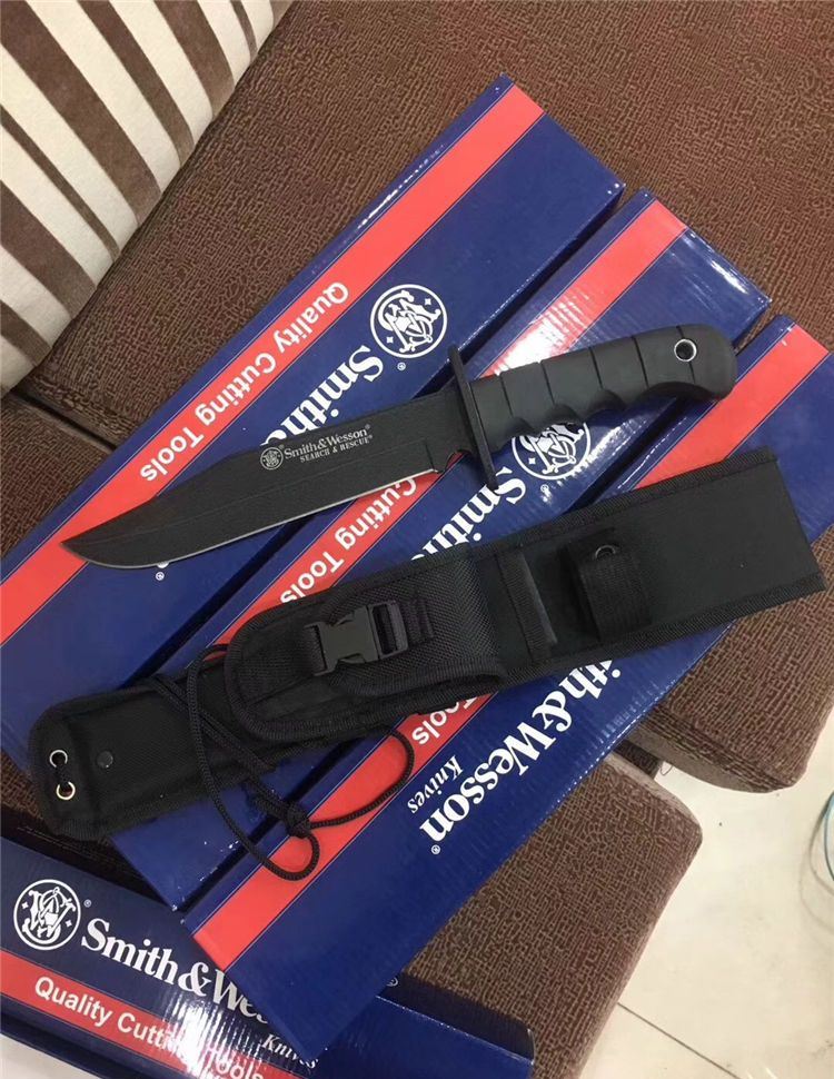 史密斯6号直刀 全长:35cm 刃长:19.5cm 刃宽:4.2cm 刃厚:0.55cm 刃材:440C 硬度:57HRC 表面:特氟龙 柄材:橡胶 柄长:13cm 结构:刀身贯穿刀柄,铜钉固定,非常牢固。 毛重:700克 附件:专用战术尼龙套