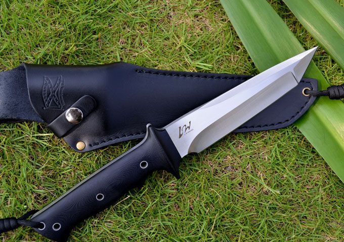 材质:9cr18mov 全长:30cm 刃长:16cm 刃厚:0.6cm 表面:缎面拉丝 硬度:59-60HRC(真空热处理) 手柄:G10(表面是L.W首创独特防滑处理工艺) 刀套:高档优质牛皮套 Walter Brend 沃特布兰登是一位举世闻名的制刀大师,蜚声刀界超级巨匠。其生平的传奇已是刀界的神话, 在数十年如一日的制刀风雨路上的跋涉、执着精神是值得我们每个做刀者学习的楷模,在刀界的卓越贡献更是我们制刀者的精神向往!