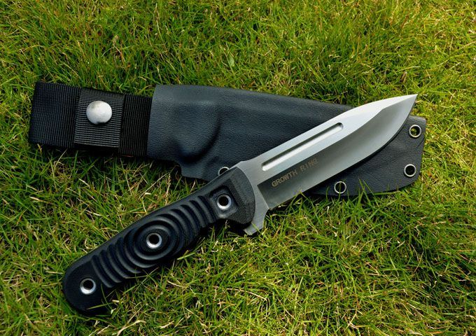 L.W(利威)GROWTH RING 年轮小直(2012版) 刃材:9Cr18M0v(含钴) 全长:24.5cm 刃长:11.9cm 刃厚:0.47cm 表面:精细砂光、拉丝 硬度:58-60hrc (真空油淬热处理) 手柄:G-10 刀鞘:进口Kydex鞘