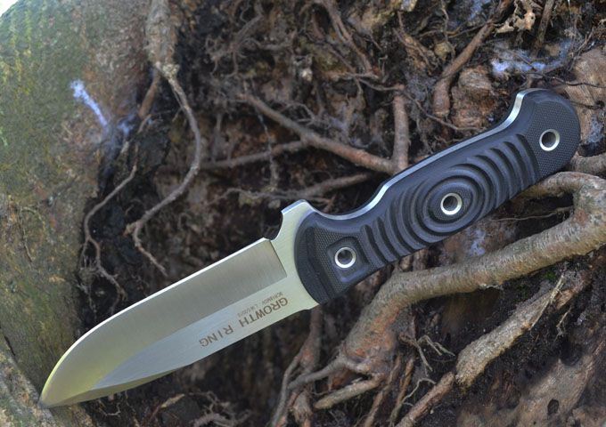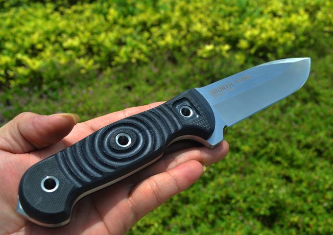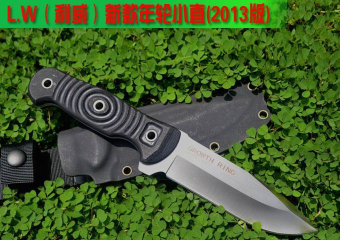 L.W(利威)新款GROWTH RING 年轮小直(2013版) 刃材:9Cr18M0V(含钴) 全长:24.5cm 刃长:11.9cm 刃厚:0.47cm 表面:精细砂光、拉丝 硬度:58-60hrc (真空油淬热处理) 手柄:G-10 刀鞘:进口Kydex鞘