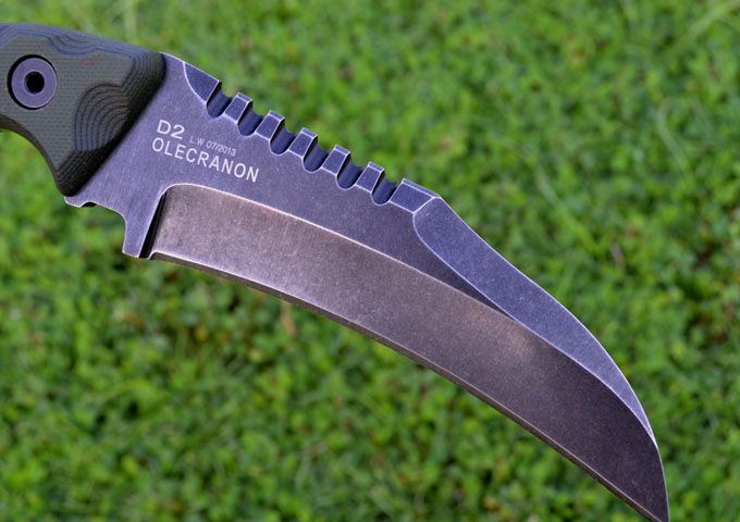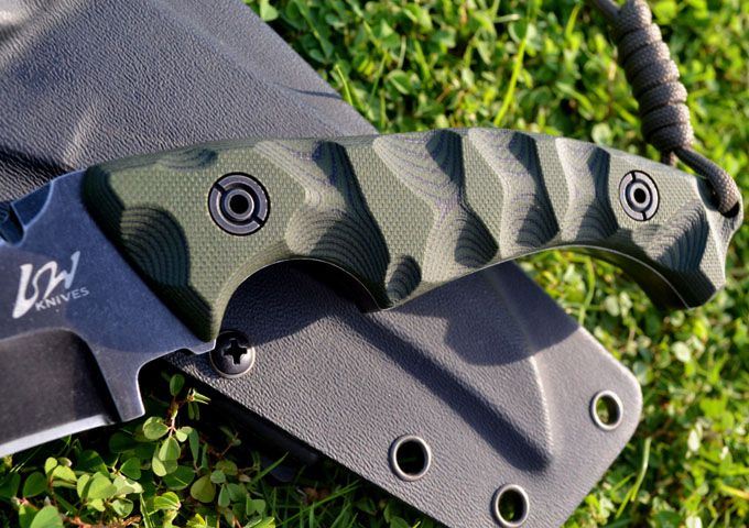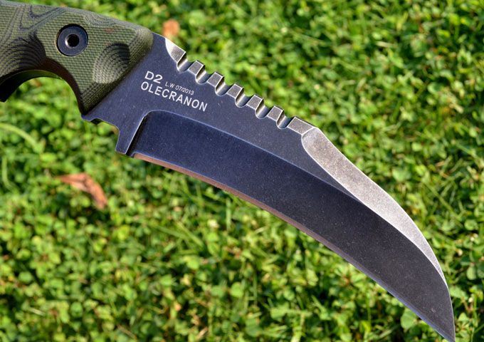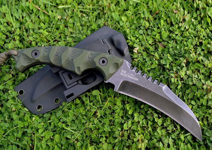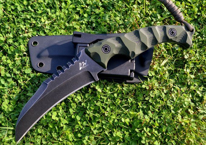 凯旋&L.W(利威)鹰嘴型战术格斗刀(沧桑石洗版) 刃材:D2 全长:24.3CM 刃长:12.6CM 厚度:0.61CM 硬度高达59--60HRC(真空油冷热处理) 表面:沧桑石洗 手柄:双色进口G-10 刀鞘:Kydex鞘