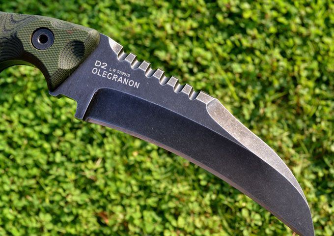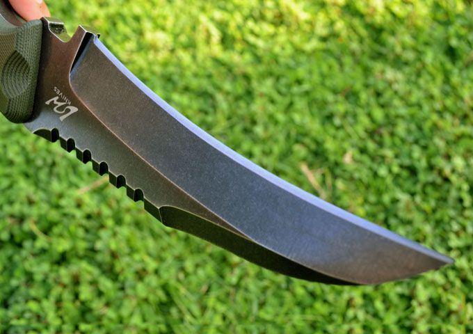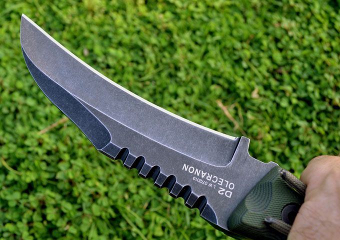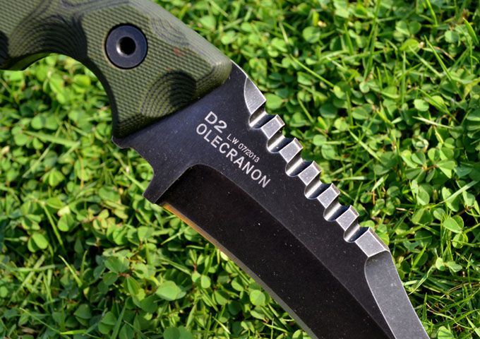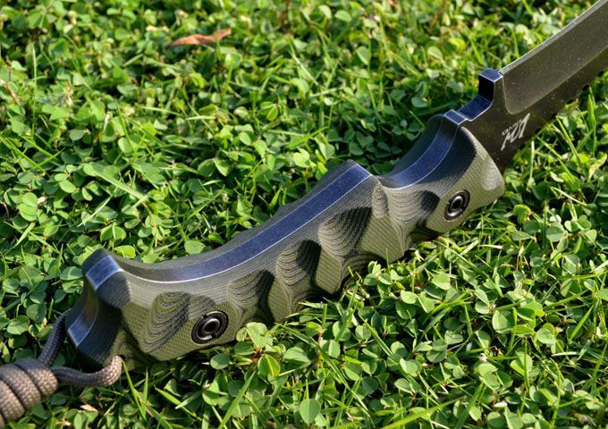 刃材:D2 全长:24.3CM 刃长:12.6CM 厚度:0.61CM 硬度高达59--60HRC(真空油冷热处理) 表面:沧桑石洗 手柄:双色进口G-10 刀鞘:Kydex鞘