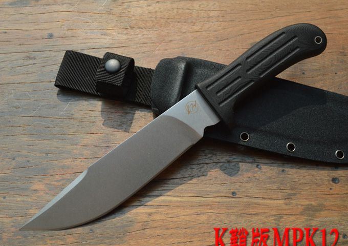 LW(利威)-K鞘版MPK12战术小直/石洗/G10柄 刃材:A2 全长:310mm 刃长:190mm 刃厚:6.0mm 刃宽:41mm 表面:石洗 硬度:HRC59-60 (真空油淬热处理) 手柄:G-10+表面防滑处理 刀鞘:进口Kydex鞘