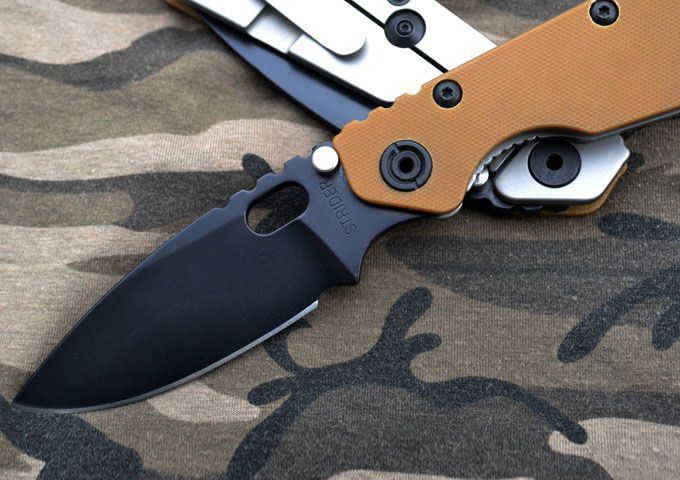 随风版Strider SMF折刀 D2钢材礼品木盒 全长:221mm 刃长:94mm 刃厚:5.0mm 刃宽: 34mm 刃材: 德国D2钢 柄材: 正面沙漠色G10,反面钛合金(数控加工) 硬度: HRC61-62 包装:礼品木盒