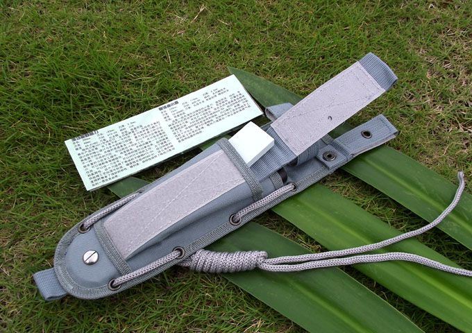 全长:300mm 刃长:163mm 刃厚:5.0mm 刃宽: 40mm 刃材: ATS-34 柄材: G10 硬度: 60-61HRC 刀套:尼龙鞘 包装:纸盒包装(配目录一张)