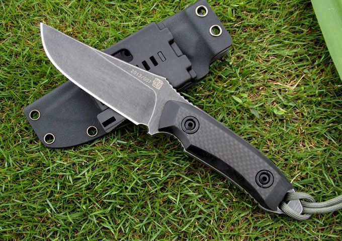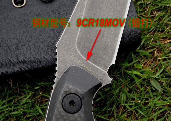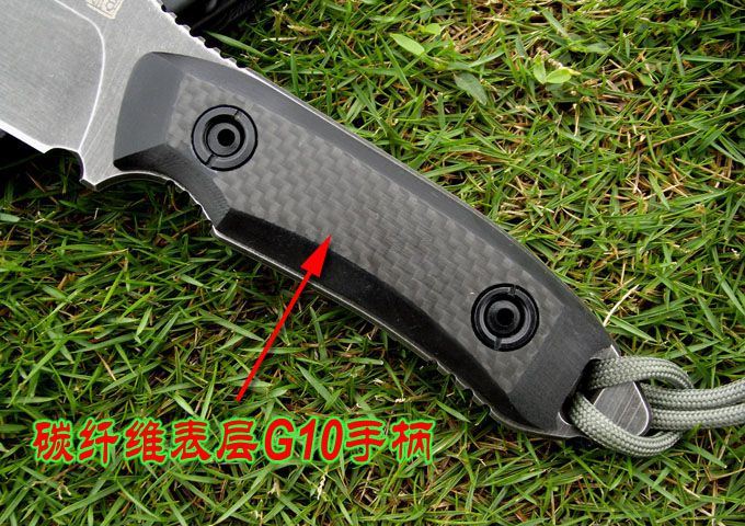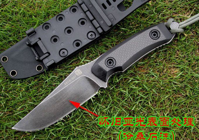 材质:9CR18MOV (锻打) 刃面打磨:高腰V磨 热 处 理:真空+深冷处理 主要性能:切,割,削为主,超凡耐磨性保持性 硬度:60±1HRC 表面处理:怀旧亚光处理 手柄:碳纤维表层G10手柄 尺寸: 全长: 220MM; 刃长: 105MM; 刃厚: 4.5MM. 配件:加厚K鞘、携带系统