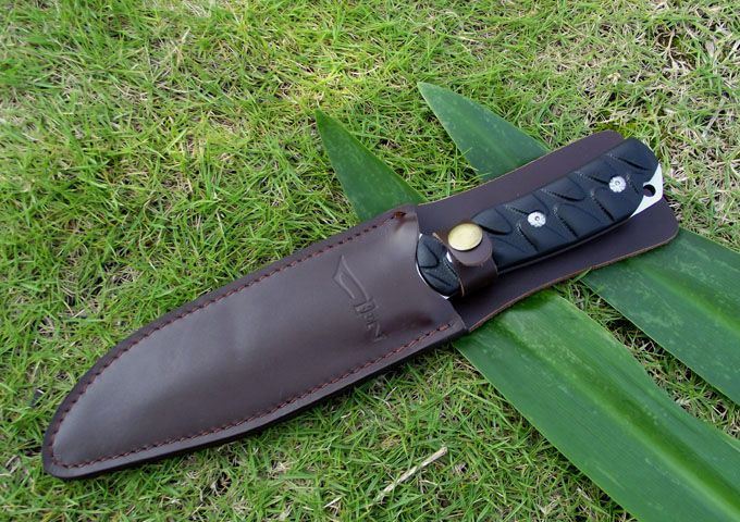 全 长:295mm 刃 长:175mm 柄 长: 120mm 刃 厚:5.7mm 刃 材:440c 硬 度:58-60HRC 刀 柄:G10 表 面:拉丝 净 重: 370.0克 皮套重: 克 重 量: 克 备 注:真空二次热处理