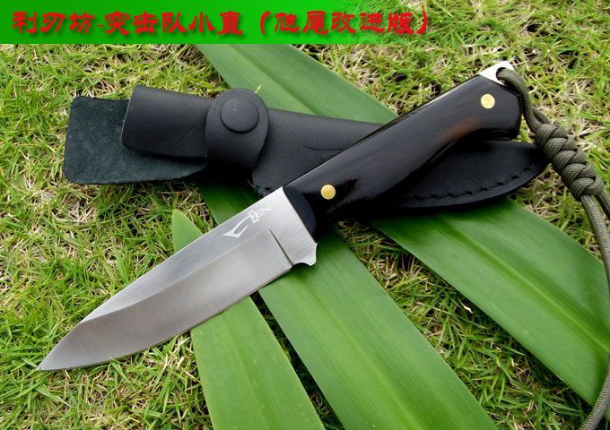 利刃坊-突击队小直(虺尾改进版) 全 长:215mm 刃 长:113mm 柄 长: 102mm 刃 厚:4.2mm 刃 材:9Cr13CoMoV(440ch) 硬 度:59-61HRC 刀 柄:黑檀 表 面:砂光 净 重: 170.0克 皮套重: 60.0克 重 量: 380克 备 注: 真空二次热处理