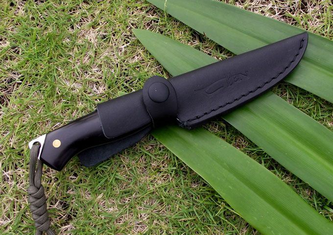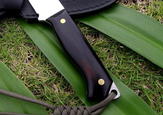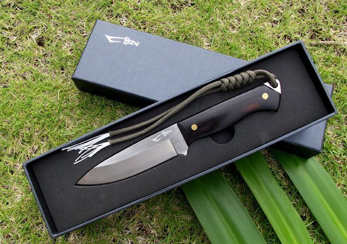 全 长:215mm 刃 长:113mm 柄 长: 102mm 刃 厚:4.2mm 刃 材:9Cr13CoMoV(440ch) 硬 度:59-61HRC 刀 柄:黑檀 表 面:砂光 净 重: 170.0克 皮套重: 60.0克 重 量: 380克 备 注: 真空二次热处理