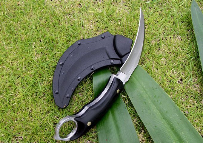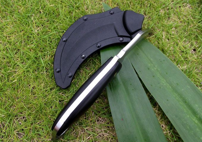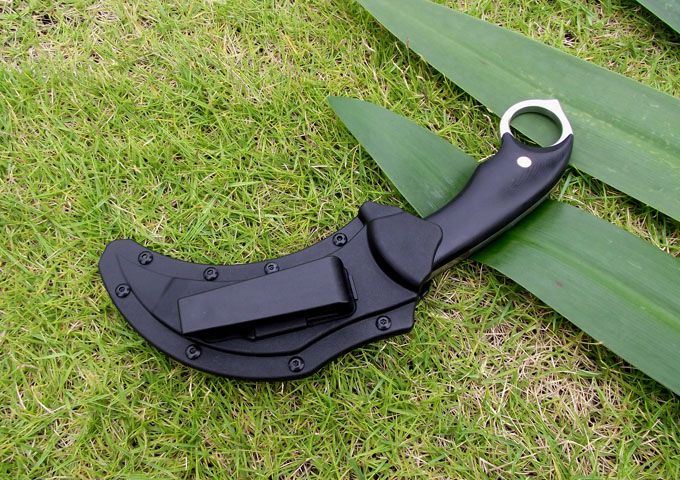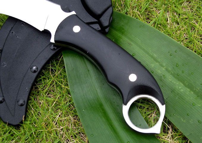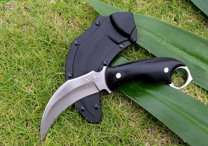 利刃坊-獠牙爪子(獠刃2) 全 长:190mm 刃 长:80mm 柄 长: 110mm 刃 厚:4.5mm 刃 材:440CH 硬 度:60HRC 刀 柄:G10 表 面:砂光 净 重: 克 皮套重: 克 重 量: 备 注: 真空二次热处理