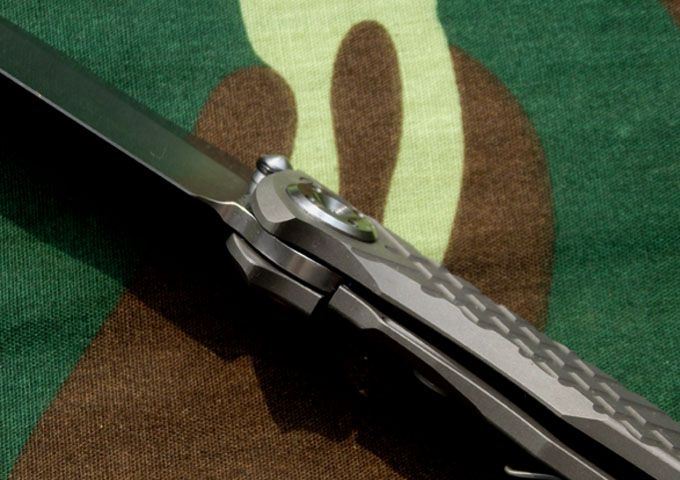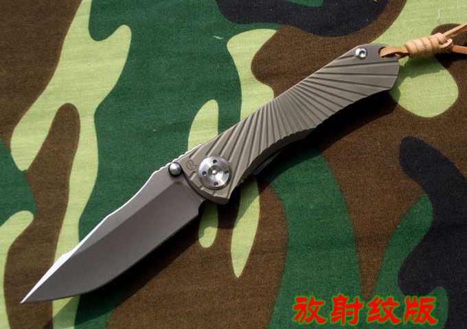 全长:212mm 折合:121mm 刃长:91mm 刃宽:28mm 刃厚:3.5mm 柄厚:12mm 重量:137g 刃材:进口440C 硬度:59-60HRC 刃面:丝光石洗 柄材:钛合金TC4(放射/网状纹) 刀夹:整体钛合金切削 定位珠:德国FAG陶瓷定位珠 钛合金锁定面做热处理硬度HRC45 铜垫片 包装:黑色礼品盒