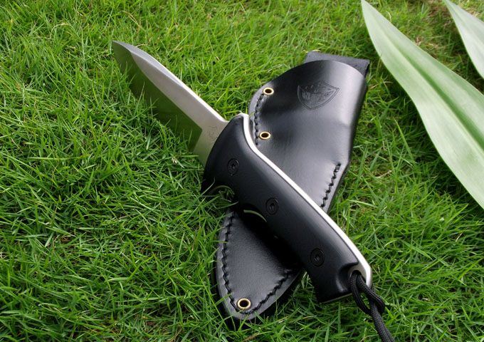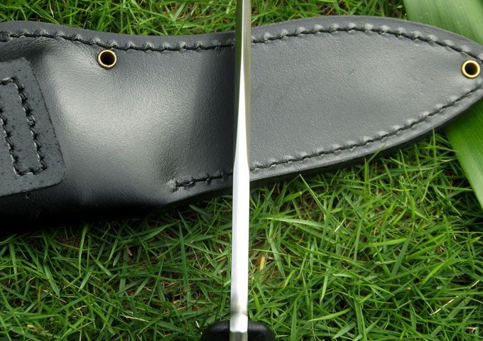 全长:278(5寸) 刃长:140(5寸) 柄长:138 刃厚:5.6 刃材:A2 硬度:59-60HRC 表面:钢本色 柄材:G10 刀鞘:牛皮 磨法:凹磨