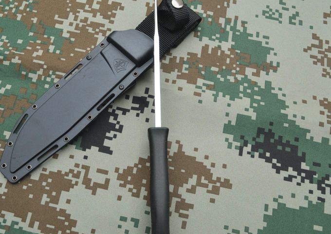 鹰飞凌经典版MPK12战术小直刀 全长:300mm 刃长:180mm 柄长:120mm 刃厚:6mm 硬度:59-60HRC 刃材:A2 表面:刀面整体,手工拉丝 柄材:Kraton 刀鞘:cancealex