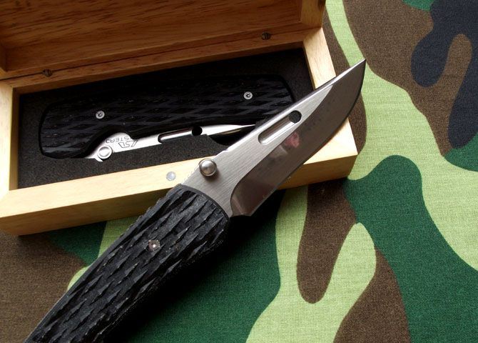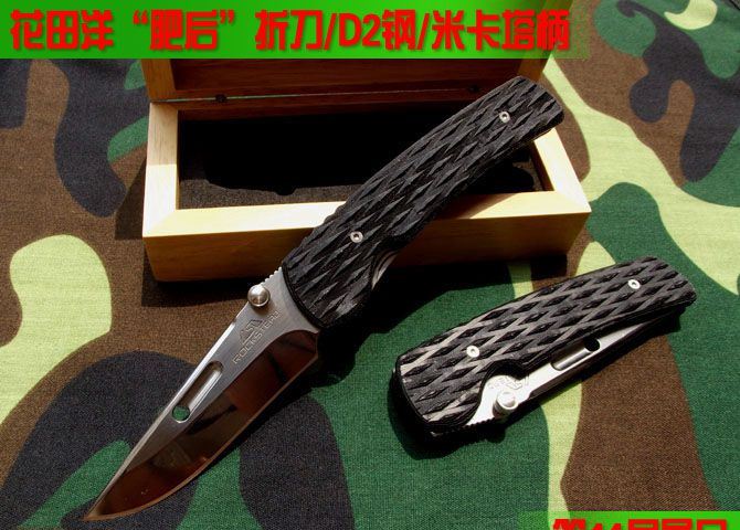 刃材: D2 全长 :21.6 CM 刃长 :9 CM 刃厚 :0.28CM 刃宽 :2.5CM 硬度 :60 HRC 柄材 :Micarta(米卡塔) 包装 : 橡木盒 重量 :315克(含包装物)