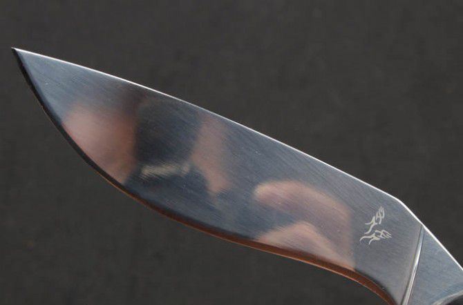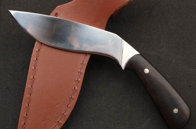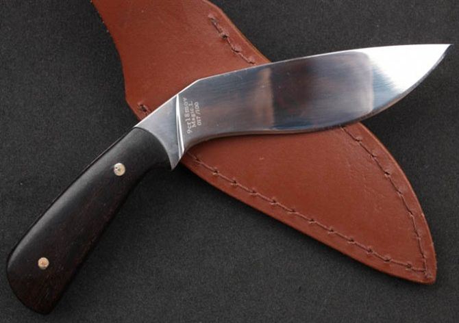 魔女小狗腿 全 长:185mm 刃 长:113mm 柄 长:75mm 刃 宽:26mm 刃 厚:4mm 刃 材:优质9铬钢 重 量:160g(含包装) 硬 度:58-59HRC 以上 表 面:镜光 柄 材:钢一体柄+非洲黑檀 锁 型:定锁 其 他:配牛皮套+纸盒