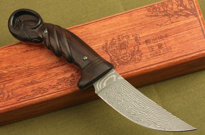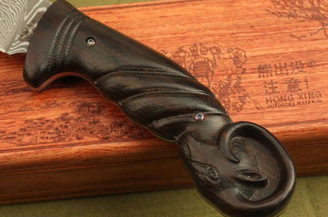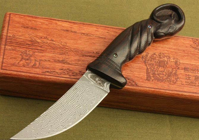 熊出没-山羊大马士革收藏版 全 长: 22.5cm 刃 长: 10.5cm 刃 宽: 3cm(最宽处) 柄 长: 12.5cm 刃 材: 大马士革 硬 度: 59 HRC 表 面: 电脑浮雕精美图案 刃 厚: 0.24cm 柄 材: 高档黑檀木 净 重: 180g 总 重: 720g 包 装:木盒 品 质: 品质卓越