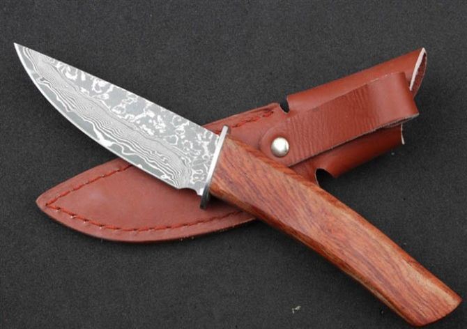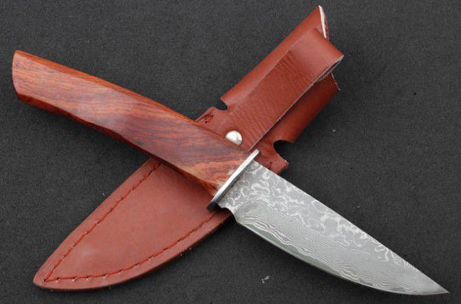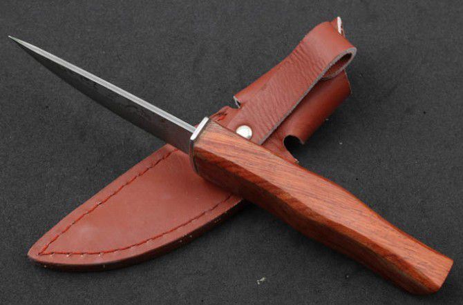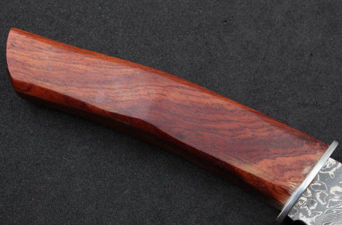 全 长: 215cm 刃 长: 10.5cm 刃 宽: 3.0cm(最宽处) 柄 长: 11.3cm 硬 度: 59HRC 刃 厚: 0.37cm 重 量: 150克(含包装) 表 面: 纯手工制造 刃 材: 大马士革 柄 材: 钢+木 其 他: 刃口锋利 大马士革钢花纹和把手木纹及颜色各异,以实物为准