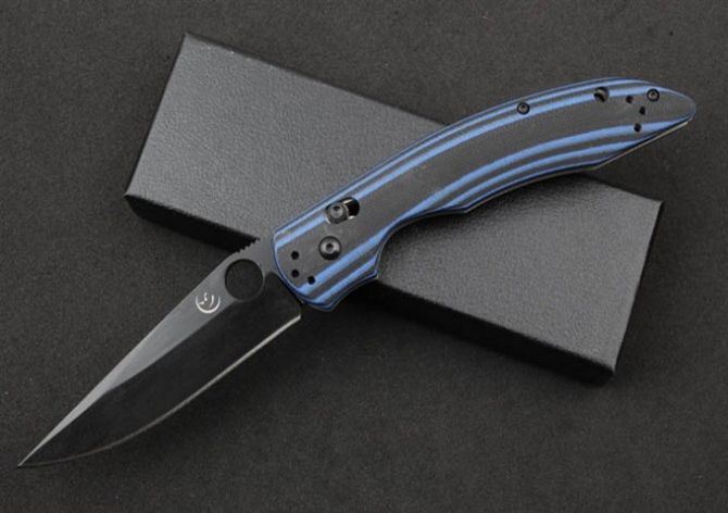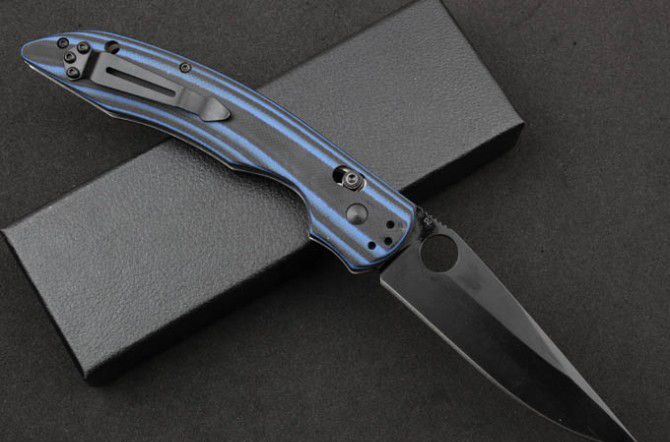 威鹏外贸代工蝴蝶806折刀黑蓝柄(黑版) 全长:23.9CM 刃长:10CM 刃厚:0.37CM 刃宽:2.8CM 刃材:GB-D2 硬度:60-62 HRC 柄材:黑蓝柄G10 原产地:美国