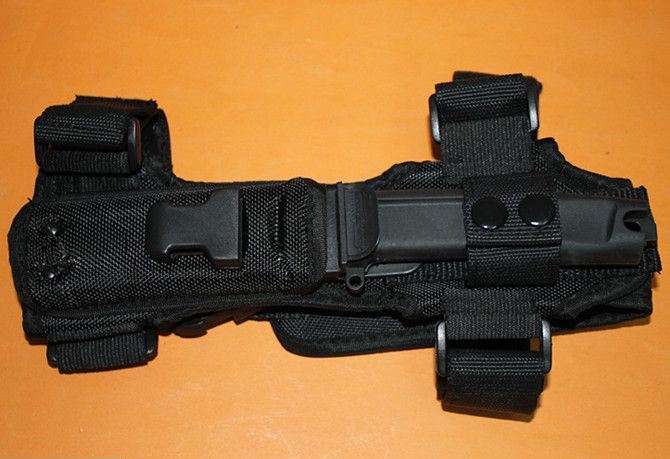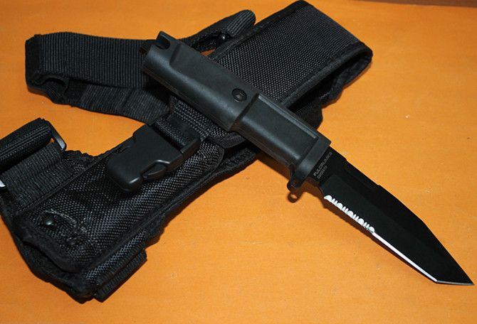 全 长: 25.5cm 刃 长: 12cm 刃 宽: 3.3cm(最宽处) 柄 长: 13cm 刃 材: 440 硬 度: 57 表 面: 黑钛 刃 厚: 0.58cm 柄 材: 橡塑 刀 鞘:CORDURA(科杜拉),内置快拨塑料鞘 重 量:刀:276g 鞘:230g 包 装:仿原厂纸盒包装,带英文说明书 其 他:几何T头,半齿刃口,贯通一体结构,短小精悍