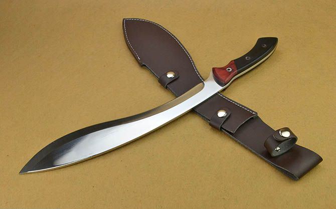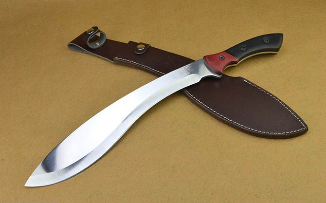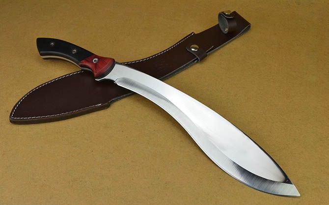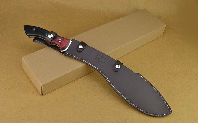 全 长:50cm 刃 长:37cm 刃 厚:6.5mm 刃 材:5C12Mov 柄 材:黑檀+红藤 硬 度:58Hrc 刀 套:牛皮