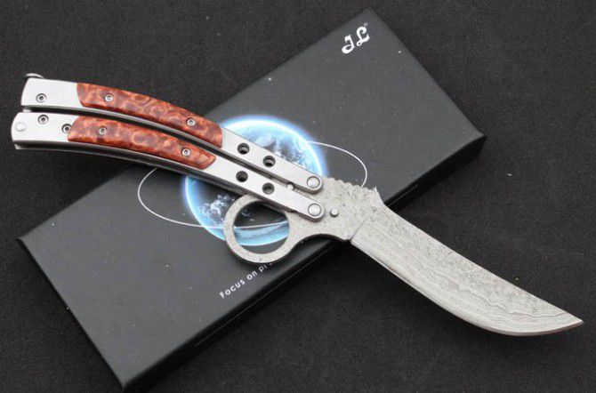 赌徒大马士革刀 全 长:24.0mm 刃 长:10.8mm 柄 长:132mm 刃 宽:23mm 刃 厚:3.2mm 刃 材:大马士革 重 量:248g(含包装) 硬 度:58HRC 表 面:大马士革钢本色 柄 材:钢柄镶嵌 锁 型:传统式制尾锁 其 他:配彩盒