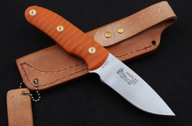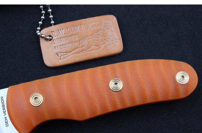 裸女小直 全 长:213mm 刃 长:100mm 柄 长:113mm 刃 宽:32mm 刃 厚:5.0mm 刃 材:AUS-10 重 量:425g(含包装) 硬 度:59HRC 表 面:沙光 柄 材:桔红G10 (半透光) 锁 型:定锁 其 他:配牛皮套+彩盒