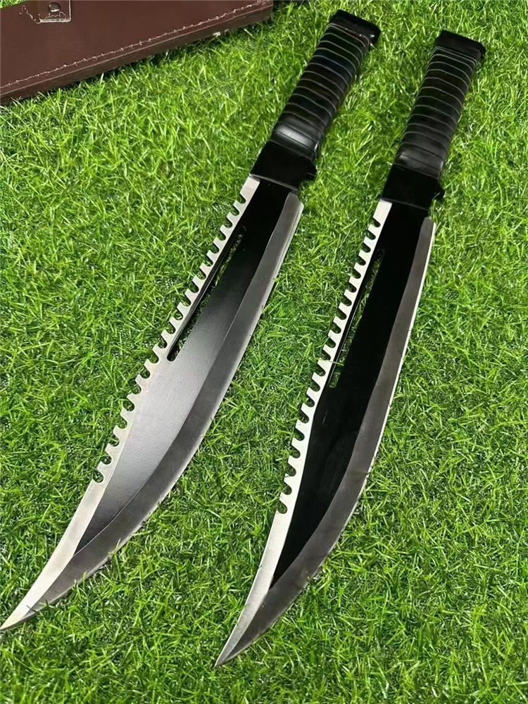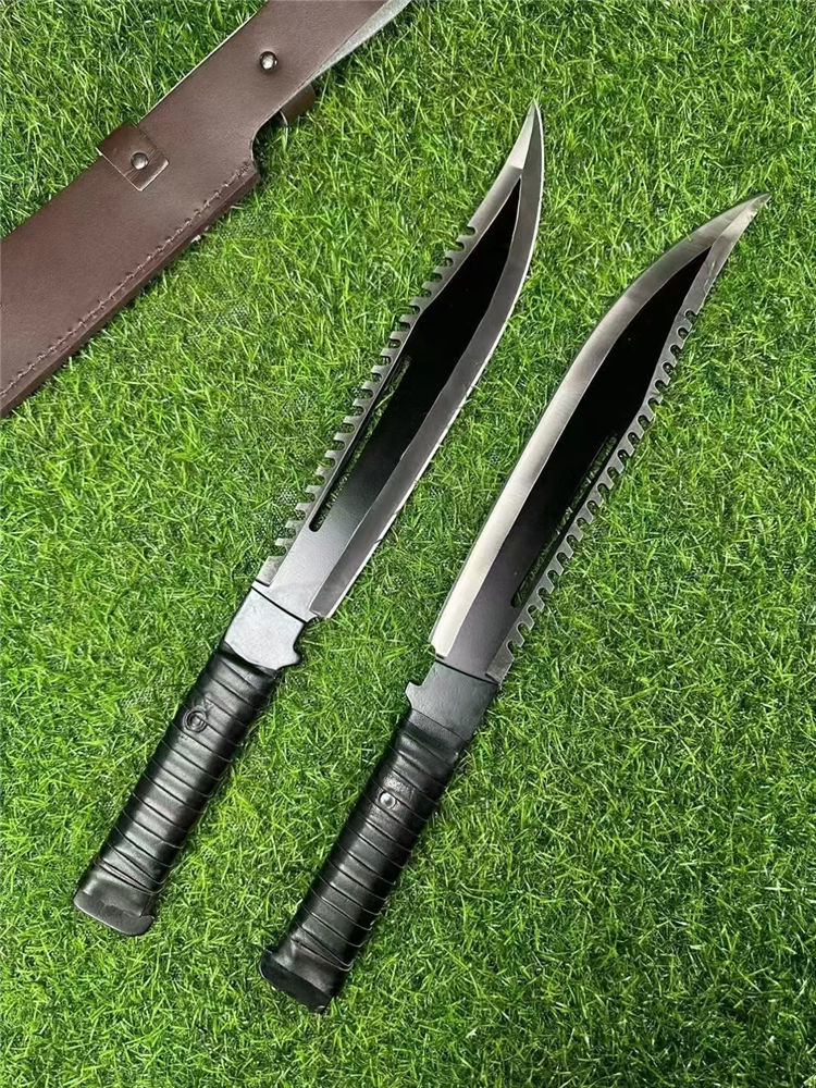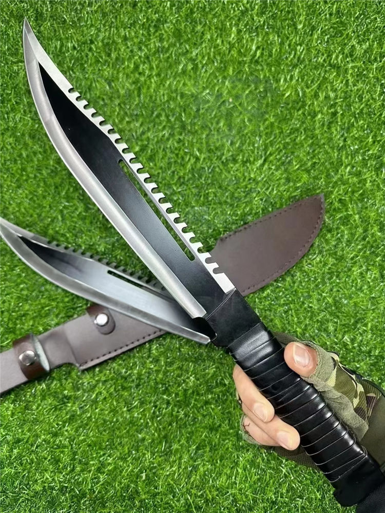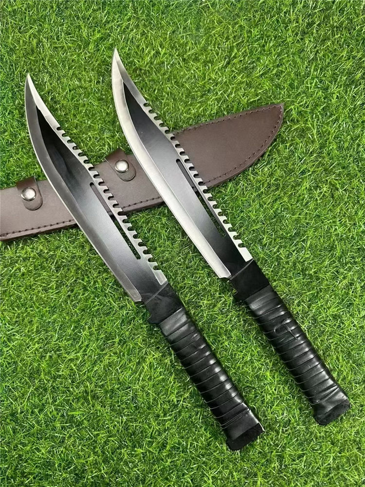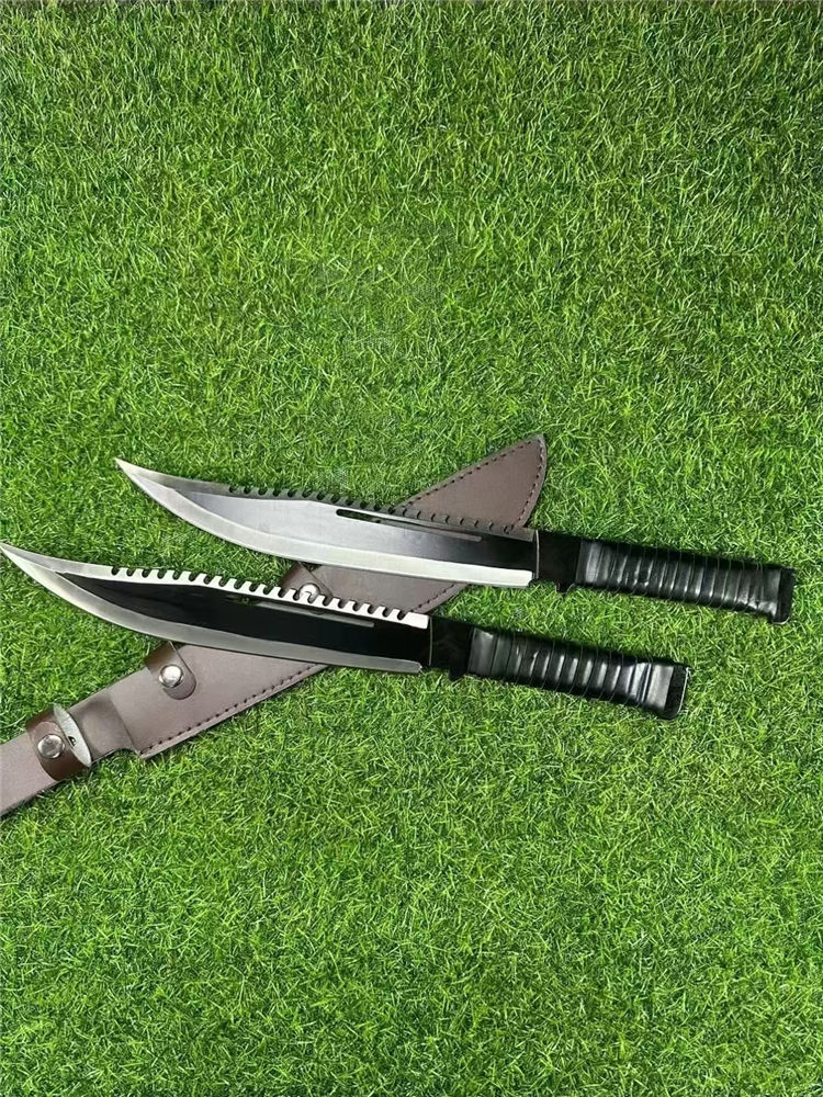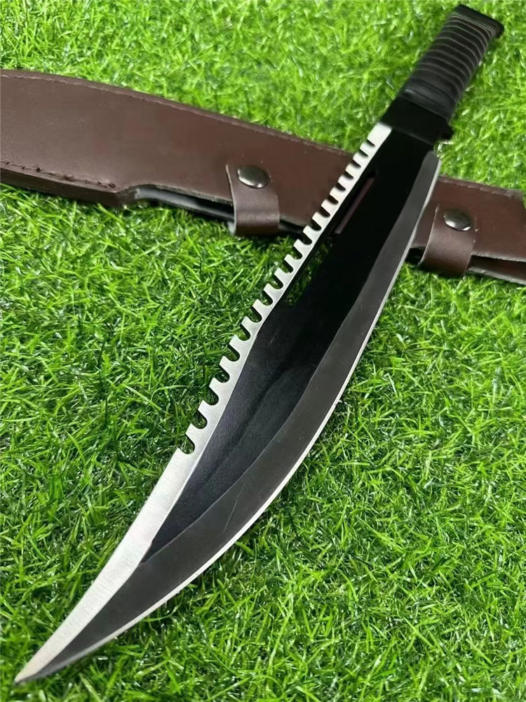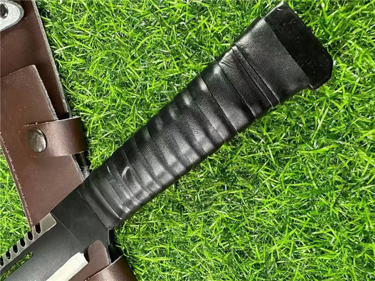全 长:460mm 刃 长:290mm 柄 长:145mm 刃 宽:50mm 刃 厚:6mm 刃 材:5Cr13Mvo 重 量:990g(含包装) 硬 度:57HRC 表 面:氧化黑 柄 材:扎皮 锁 型:定锁 其 他:配皮套+纸盒