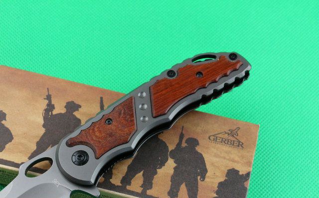 戈博X36快开折刀 刃材:440 硬度: 57HRC 全长:22.5CM 刃长:9.5CM 刃厚: 0.4CM 刃宽:3.2CM (最宽处) 柄长: 12.5CM 涂层:钛离子 柄材: 全钢+木片 重量:230克 锁定: 线锁 其它:品质保证。