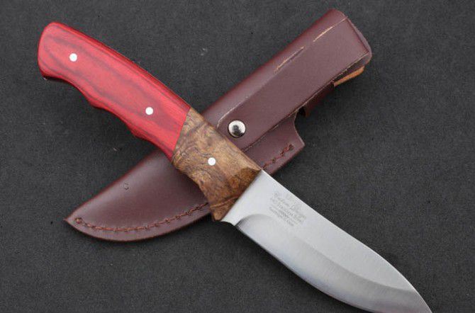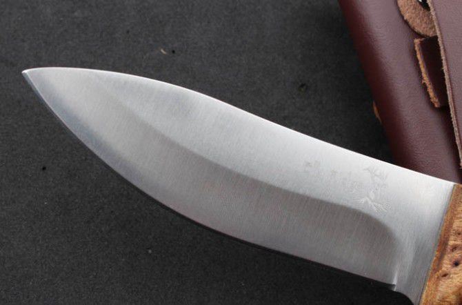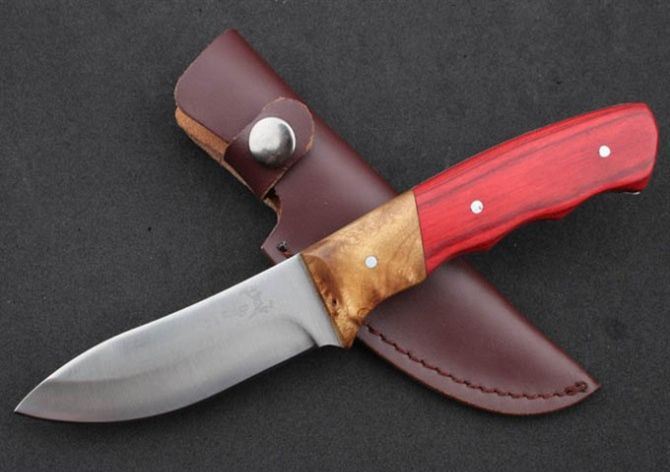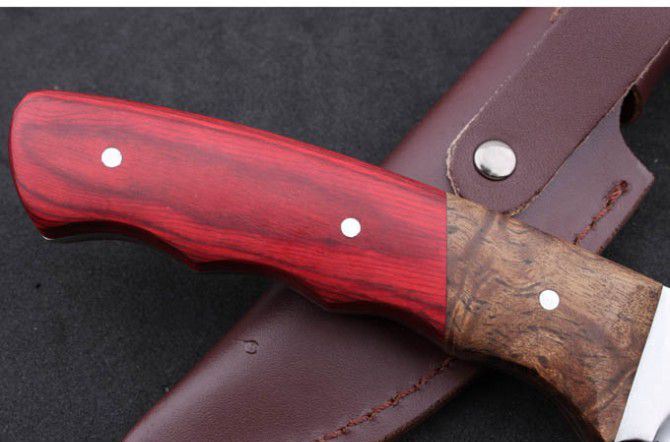 勃朗宁-美人鱼小直 全 长:214mm 刃 长:98mm 柄 长:115mm 刃 宽:28mm 刃 厚:3.1mm 刃 材:5Cr13Mov 重 量:213g(含包装) 硬 度:56HRC 表 面:砂光 柄 材:彩木+白影木 锁 型:定锁 其 他:配牛皮套