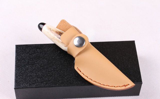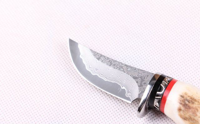全 长: 约13.5cm 刃 长: 5.1cm 柄 长: 约7.8cm 刃 宽: 2.1cm(最宽处) 硬 度: 58HRC 刃 厚: 0.23cm 柄 材:野生鹿角 重 量:140 克(含包装) 刃 材: 大马士革 表 面: 特有的花纹原色 其 他: 配高档礼品盒.真皮套 大马士革钢花纹和把手木纹及颜色各异,以实物为准!