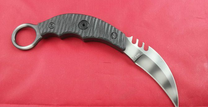 重 量 285克(带鞘)默杀II来了!!THE ONE高品质爪刀系列,HS很好地秉承了KERAMBIT这种随身指环爪子的攻击特性。刀身双面开锋,手臂往复挥动都能给敌人以出其不意的打击。使HS简直就是猛禽的利爪,出奇不意、攻其不备,是HS所担负的职责。