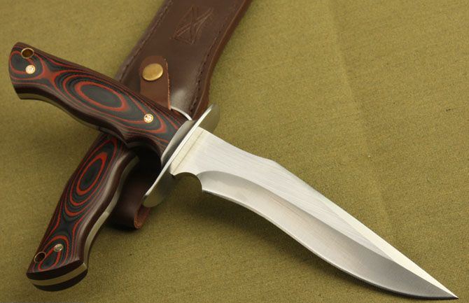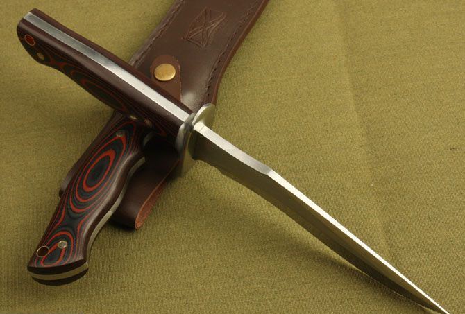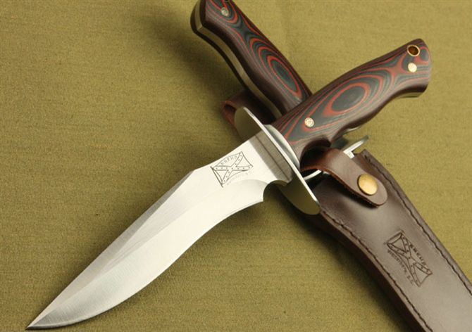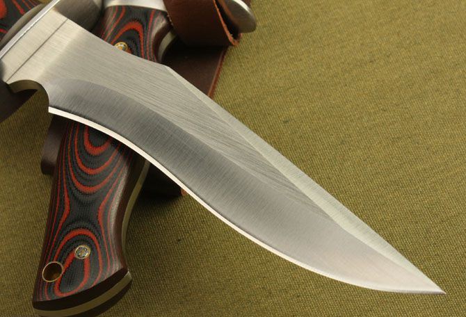 布兰登—M4红G10柄直刀 全长:280mm 刃长:160mm 刃宽:30mm 刃厚:5.2mm 刀重:380g 毛重:470g 刃材:7Cr17 硬度:58HRC{真空热处理) 表面:钢本色 柄材:G10柄 刀鞘:手工缝制,头层牛皮