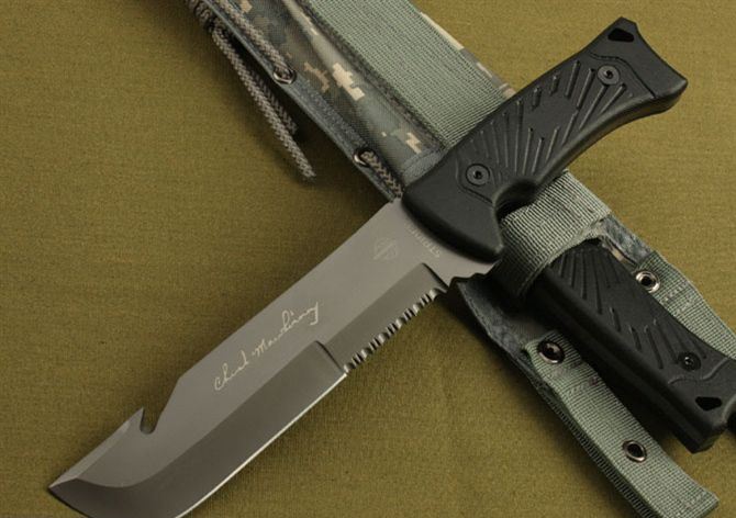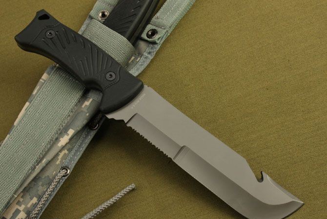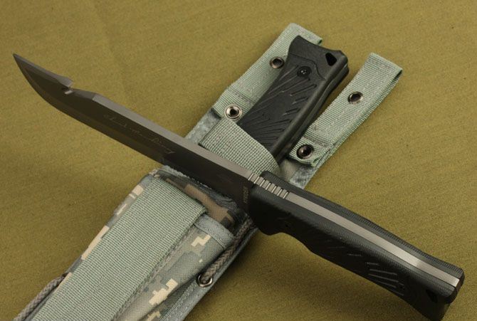 战圣3号直刀 全长:315mm 刃长:180mm 刃厚:5.8mm 刃宽: 4mm 刃材: 5Cr13 柄材: 尼龙ABS 硬度: 56HRC 重量:880g(含包装) 刀套:尼龙战术刀套