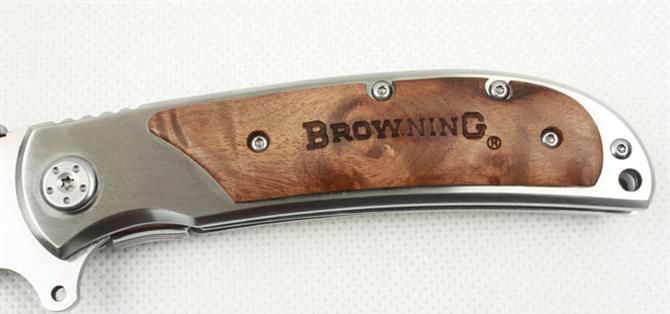 刃材:440 硬度: 57HRC 全长:21.5CM 刃长:9CM 刃厚: 0.3CM 刃宽:2.8CM (最宽处) 柄长: 11.5CM 涂层:手工砂光 柄材: 钢+铝+天然白影木 重量:210克 锁定:线锁 带腰夹,勃朗宁公司原厂彩盒